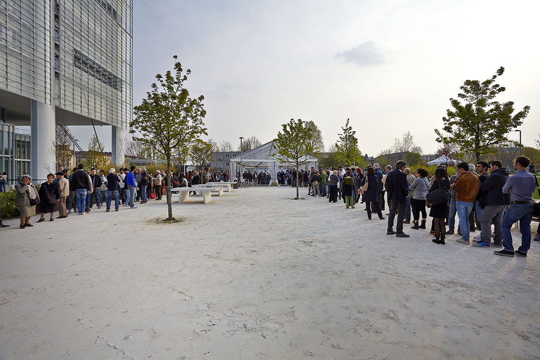 The new Intesa Sanpaolo skyscraper in Turin inaugurated on 10th April 2015. It was visited by over 6,000 people in two days, exhausting the available access possibilities earlier than expected.