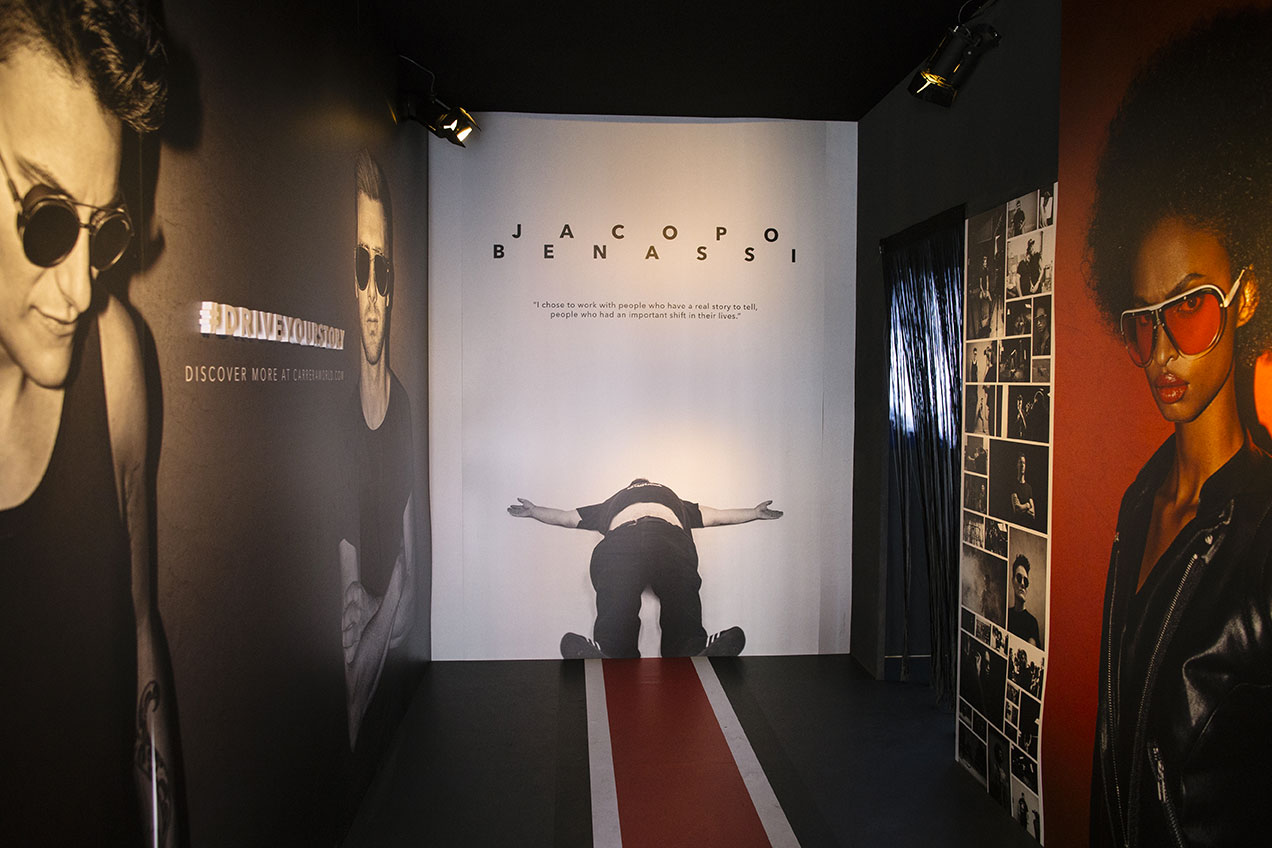 Surrounded on the outside by an unconventional infinity mirror, the Studio drove visitors into Carrera’s universe, through the striking images and stories that renowned photographer and artist Jacopo Benassi captured for the Brand’s SS18 campaign #DriveYourStory.